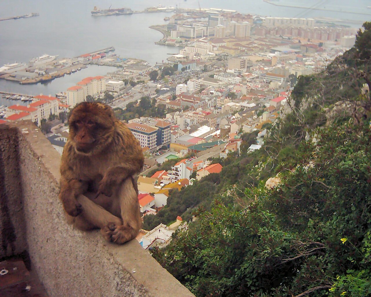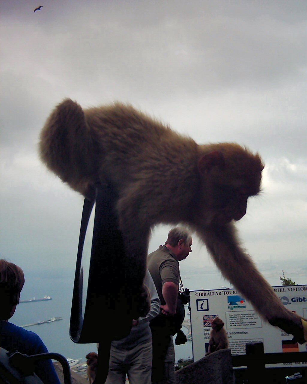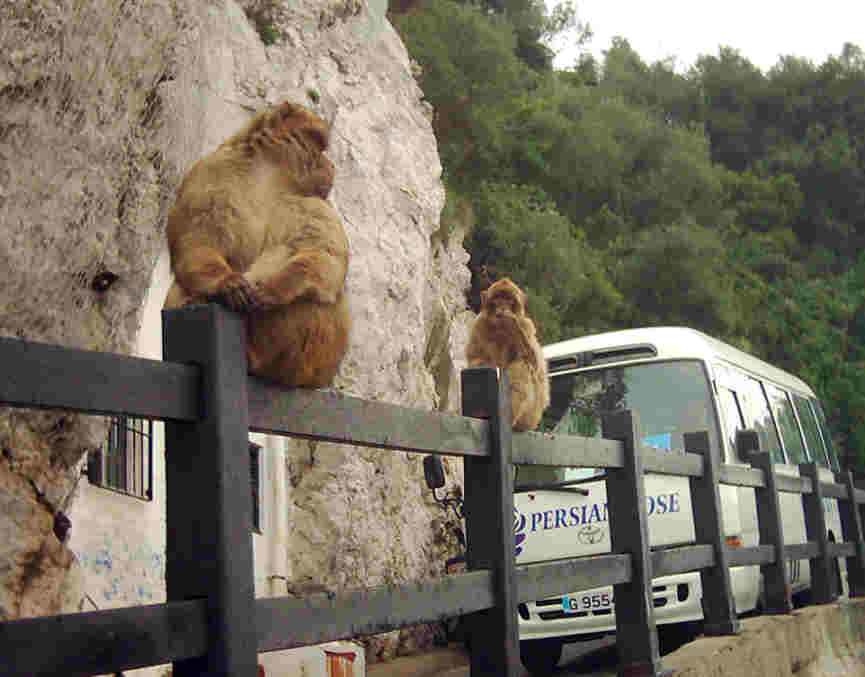 After this we approached the area where the Barbary apes are to be found, or the Gibraltar monkeys as they are more commonly known. The current estimate is 205 living there in the wild. There were large ones, small ones, cheeky ones, solemn ones and greedy ones. They are ready to grab any tit-bits that visitors might proffer. There was a splendid view over the harbour and the reclaimed area.