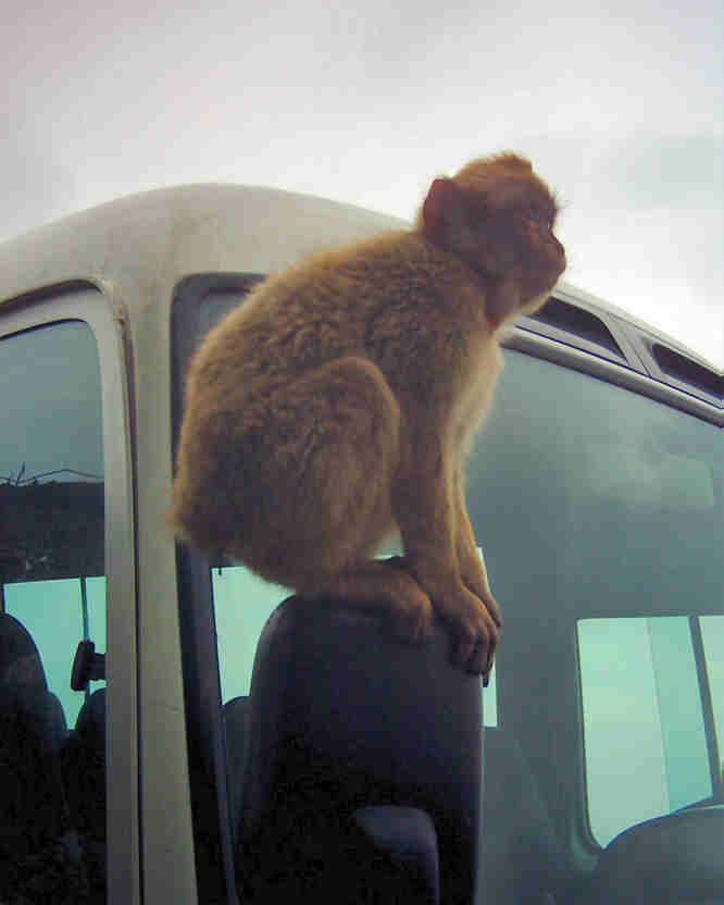 The apes also invaded the bus! The wing mirror was a favourite perch for the small ones.