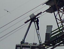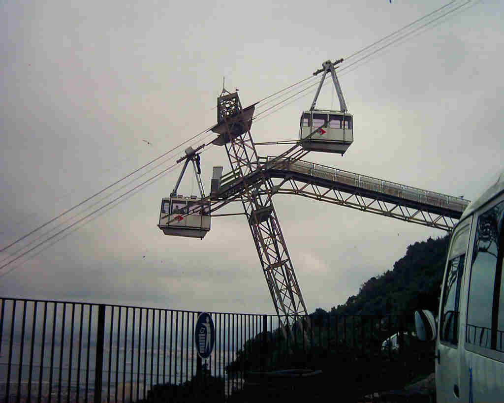 There is a cable car, installed in 1966 which facilitates an easy ascent up the Rock. It seems that these function even during times of maintenance! See the man standing on the outside of the lower one! See enlargement on the right.