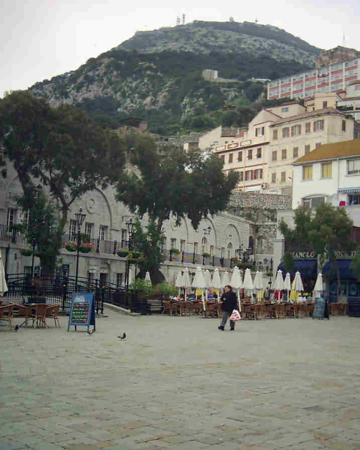 Water is provided by desalinated sea-water which is held in reservoirs high on the Rock, and the town is then gravity fed. The population is 30,000 and there are 20,000 vehicles. Why so many? Petrol is 46.5p per litre, half the price in the UK. The English pound is the currency used although coins are issued in Gibraltar and are not legal tender elsewhere. On arrival in the town we were dropped off for half an hour's shopping.
